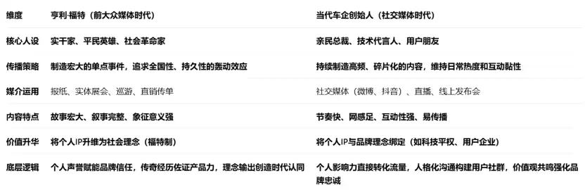 移动互联网时代要求创始人具备内容创作者思维:高频输出、强互动性、鲜明人格特质。这与福特时代通过重磅事件制造社会轰动的策略形成对比。现代传播更注重持续轻量内容维持热度,形成"日记体"陪伴感。但无论技术如何演进,真实参与、故事创造与价值升华始终是IP运营的核心。