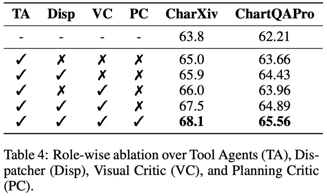 结果显示,在CharXiv与ChartQAPro上,简单的VisualCoT结果明显低于PixelCraft的范式。