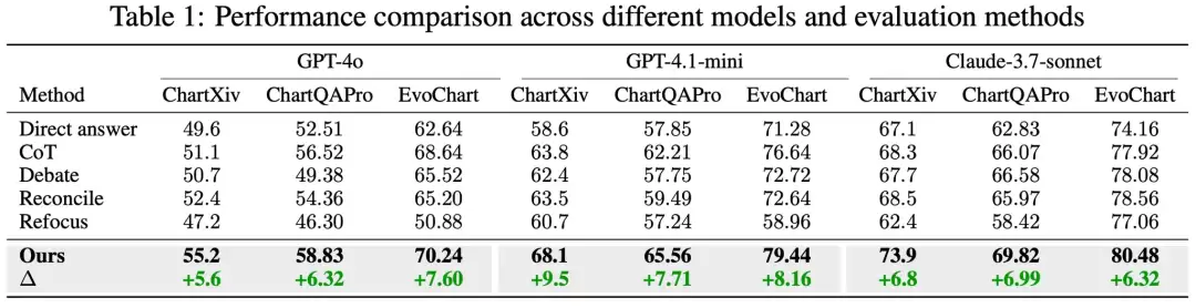 通过这一整套设计,系统在多个benchmark上取得跨模型一致的提升,且中间过程清晰可检。