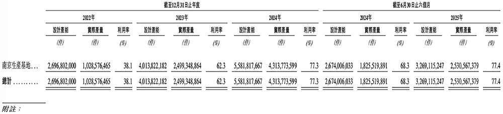2025年上半年,南京生产基地实际产量达25.31亿件,产能利用率为77.4%。