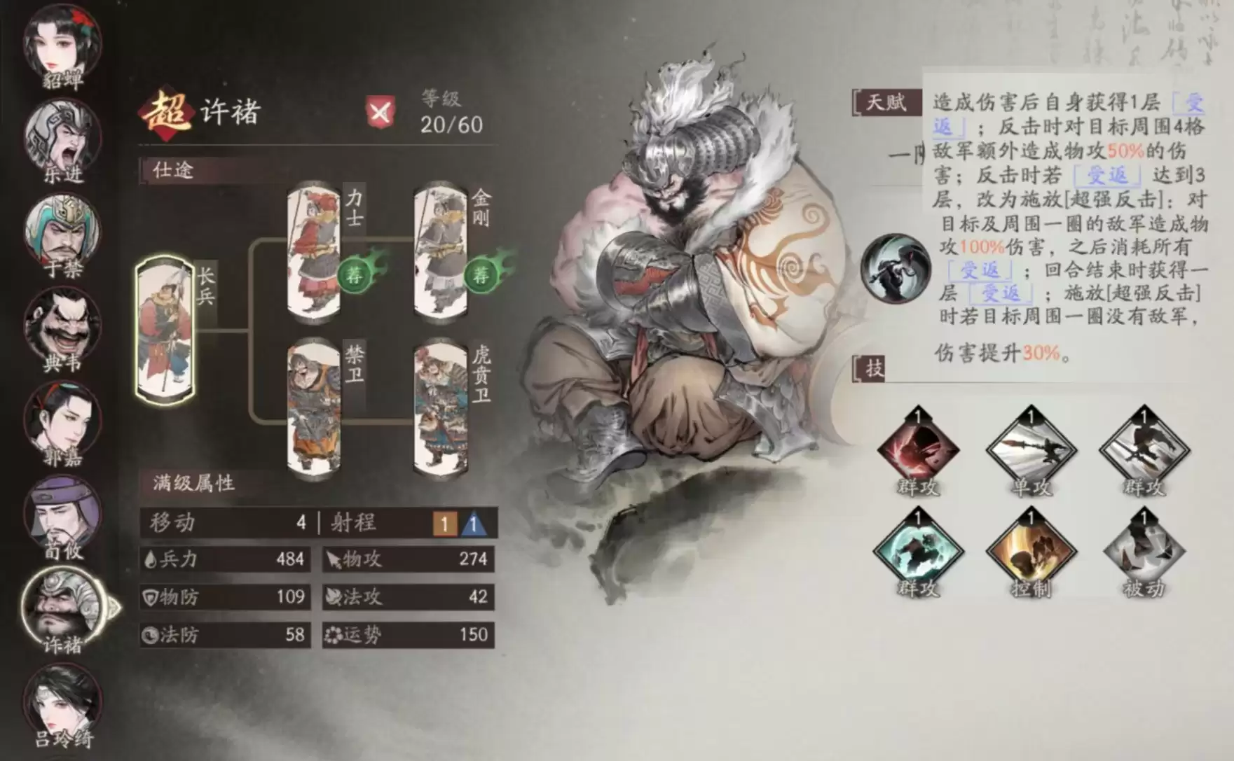 在实战搭配方面,许褚无疑是与韩遂配合最默契的主将之一。许褚本身具备基于反击次数叠加伤害的机制,且攻击目标数量越多,爆发潜力越强。搭配韩遂后,不仅能获得额外的物防支撑,还能通过反戈与铸甲双重加成进一步放大反击输出。另一位推荐组合是曹洪,虽然其品级为杰品,但前期战斗力突出,常用于过渡或特定阵容。韩遂能有效增强曹洪的坦度,并在受击时回敬固定伤害,极大提升了其战场存活率与压制力。在此类配置下,另一位副将只需侧重兵力与双抗属性补充即可,整体成型速度快,适用场景广泛。