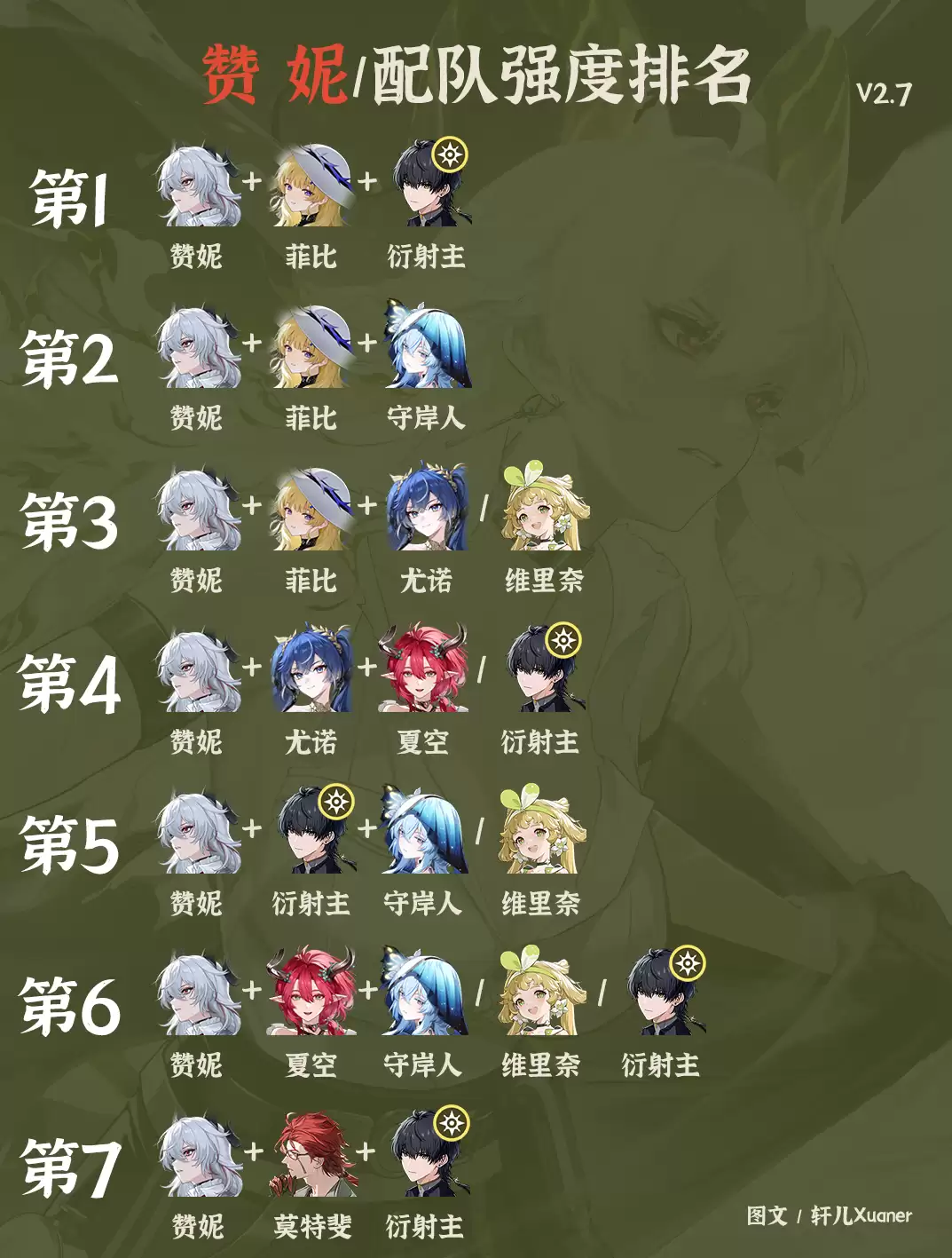 《鸣潮》V2.7赞妮全配队强度排名详情: