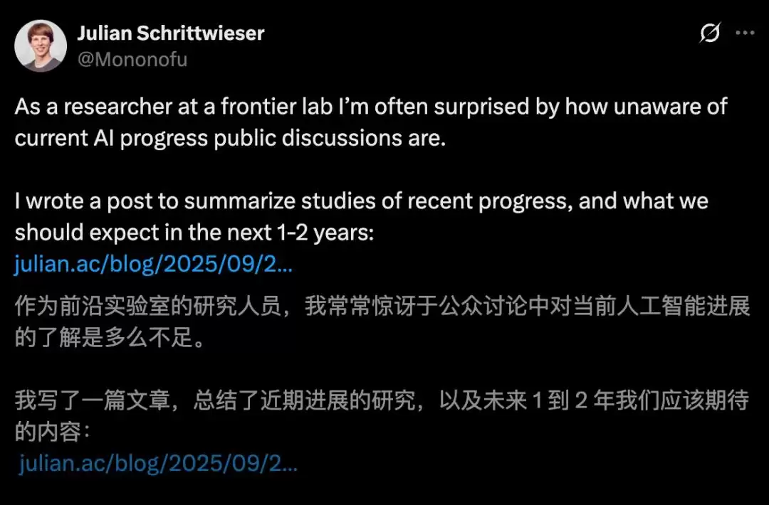 Julian的意思很直接:我们正在严重低估AI的进展。