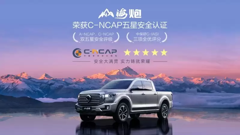 在舒适性与安全性方面,山海炮Hi4-T采用双后围结构设计与多层隔音玻璃,NVH表现媲美豪华SUV。后排座椅支持电动调节,最大靠背角度达33°,配合全密封车身与尾翼导流设计,营造出静谧安逸的驾乘环境。安全方面,该车型通过A-NCAP、C-NCAP双五星安全认证,成为首款通过中保研碰撞测试的皮卡车型。动力电池经过高温、浸水、挤压等严苛测试,安装于后部车架且离地间隙超过400毫米,配备大梁防护结构,有效规避越野磕碰风险。
