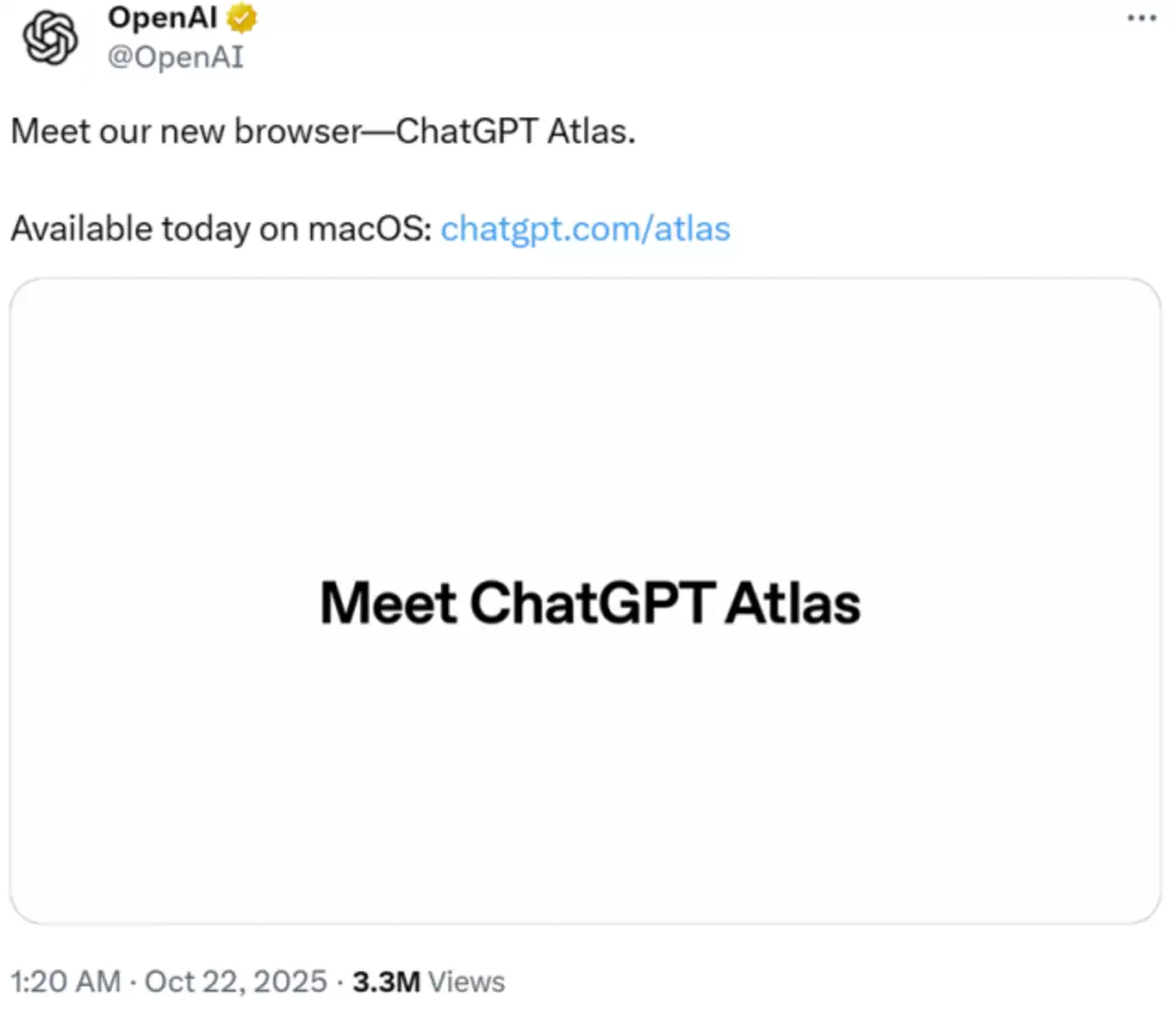 一边是名为Atlas的AI浏览器高调发布,剑指谷歌的核心腹地;另一边,开放了数字资产、视频拼接等功能的Sora 2惊艳亮相,音乐生成工具、内置电商功能也开启研发尝试,产品发布的节奏犹如饺子下锅,密集且滚烫。