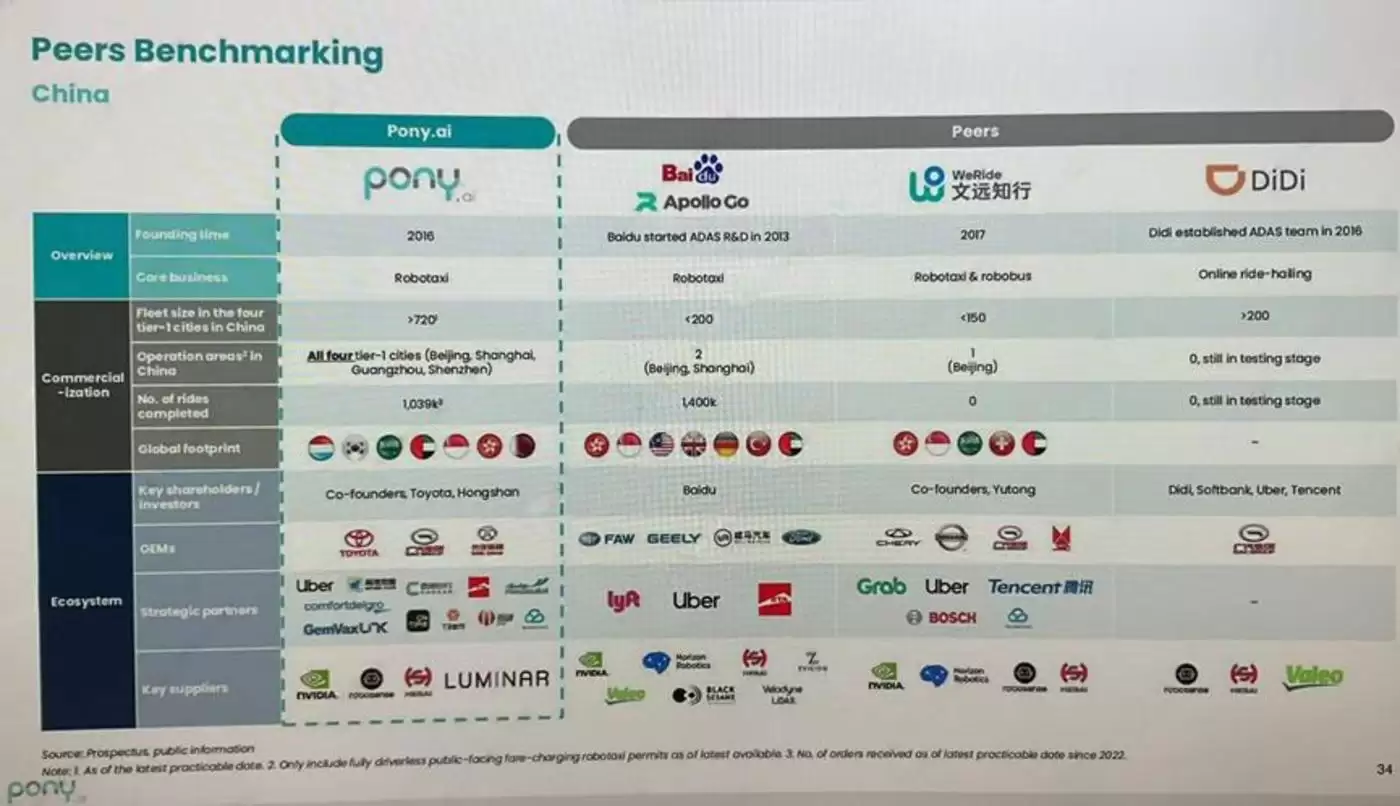 近日,小马智行在香港路演中使用的一份投资文件引发了广泛争议,其中涉及竞争对手文远知行以及百度萝卜快跑的相关数据。几个备受关注的焦点包括:一是运营区域——文件仅为文远标注了北京一座城市,为百度萝卜快跑也只标注了北京和上海;二是已完成订单量,文件显示文远的相关数据为零。