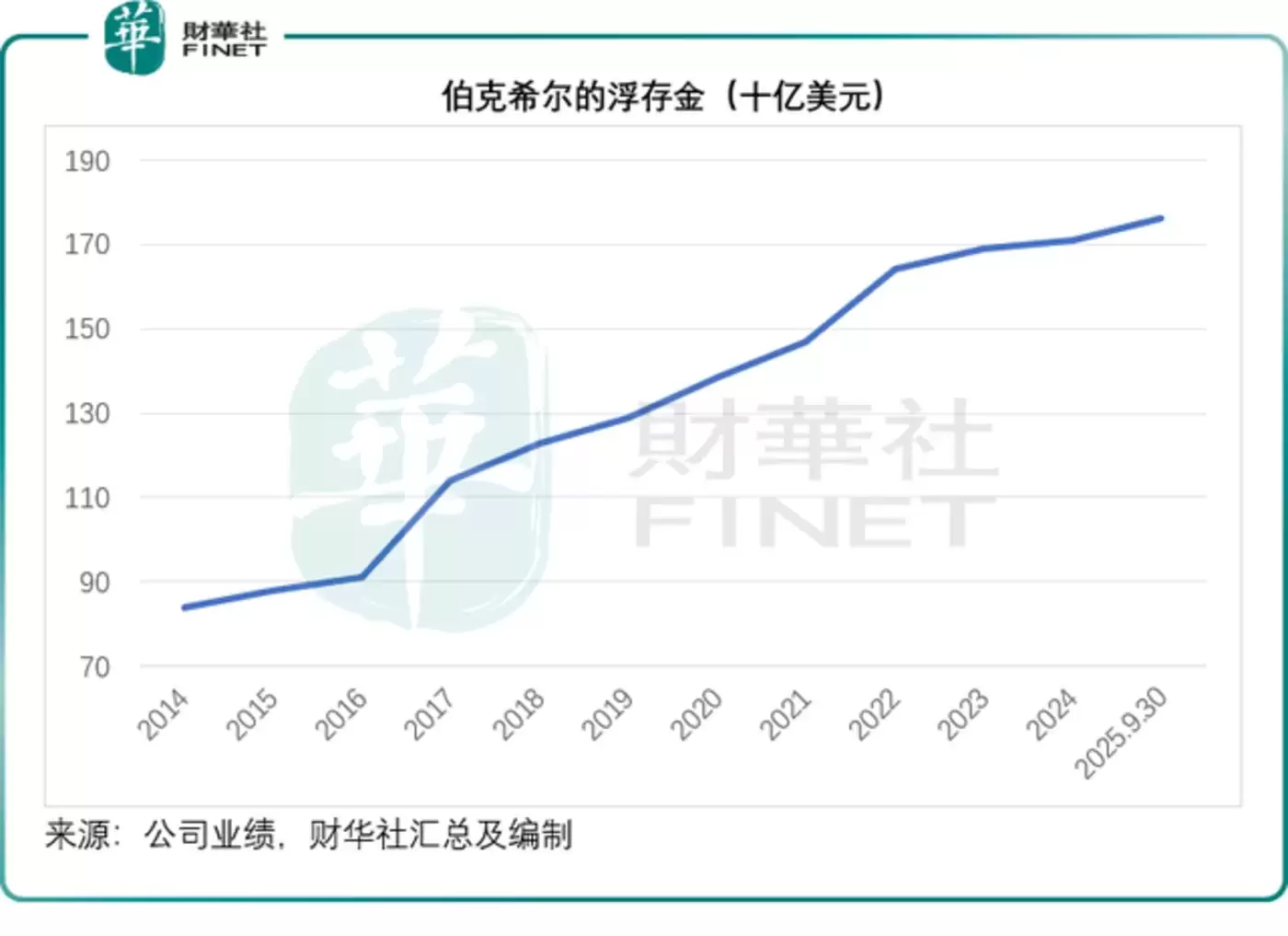 截至2025年9月30日,伯克希尔用以投资的浮存金从年初时的1,710亿美元进一步上升至1,760亿美元,见下图。
