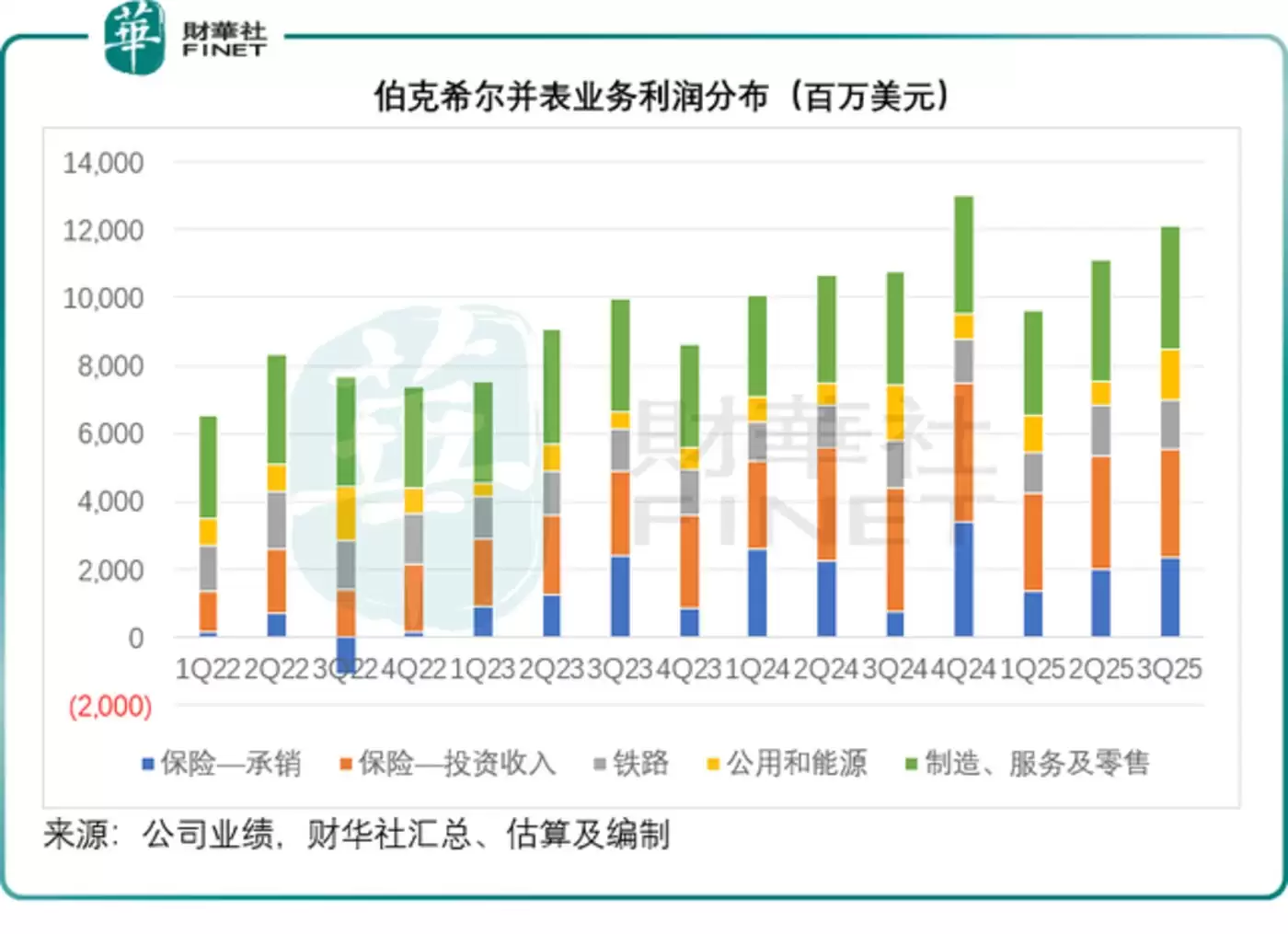 伯克希尔的利润主要来自两大部分:并表业务和投资业务。并表业务主要为伯克希尔下属子公司经营业务,涵盖公共业务、铁路、制造业、零售、服务以及其投资业务最主要的资金来源——保险。这些并表业务由职业经理人经营并向伯克希尔汇报,伯克希尔不干预这些业务的管理,投资业务则由巴菲特主导。