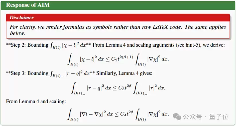在误差估计阶段,人类专家发现AIM的证明存在逻辑缺口后,通过对问题本身和实验结果的分析,拆分了多个中间问题,最终让AIM自主修正证明结论,形成完整推理链。