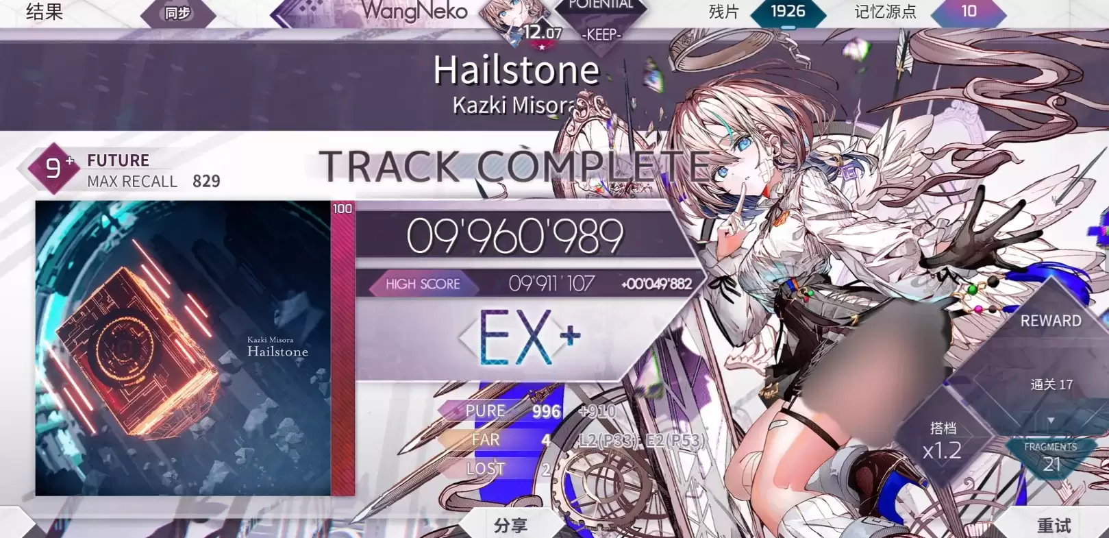 哀寂在游戏中可以通过购买专属的「Lucent Historia」曲包获取,随后在该曲包中进行觉醒之后也能解锁他的部分能力。这个角色后期在世界模式地图9-3中有更大机会可以获取。目前他的基础效果,也就是技能方面,能通过困难歌曲中的解锁来使用。这个哀寂收集条技能,其效果其实与玩家在歌曲点击中收集到的回忆率有关,因为回忆率里面计算的效果基本都与大家的点击是否生效有关。