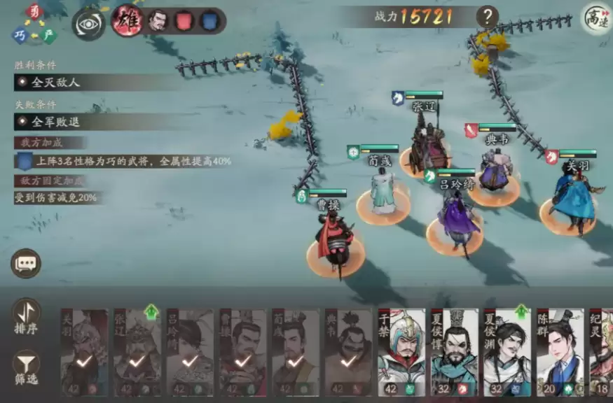每个武将都拥有独特的技能和终极绝技,在技能面板上可以查看完整的效果说明和释放条件。所有技能施展都会消耗气力值,不过部分辅助型武将的技能可为全队恢复气力,建议队伍中务必配备这样的角色。需要注意的是,不同技能之间存在相互克制的关系——大招通常能压制普通攻击,若双方同时使用大招,则需要根据武将的属性优劣来判定最终效果。