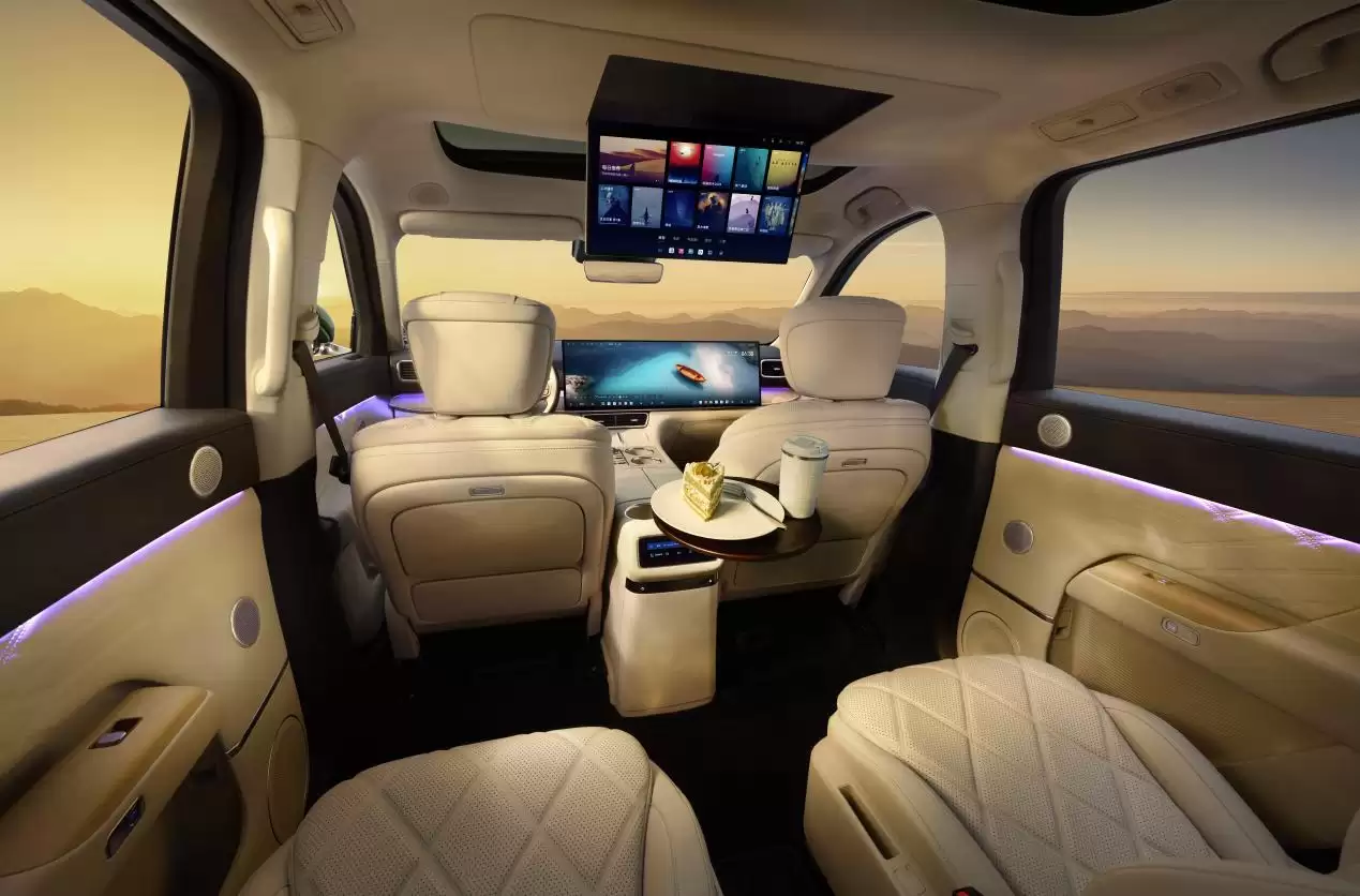 豪华配置方面,17平方米皮质包覆内饰与全车静音系统营造出深空级静谧空间。30英寸6K一体环抱屏与17.3英寸后排娱乐屏构成移动影院,配合7.5.4声道全景声音响系统与256色氛围灯,打造沉浸式视听盛宴。1.5TGDI增程发动机与高性能电机组合,实现15分钟快充与超长续航,完美兼顾性能表现与经济性。