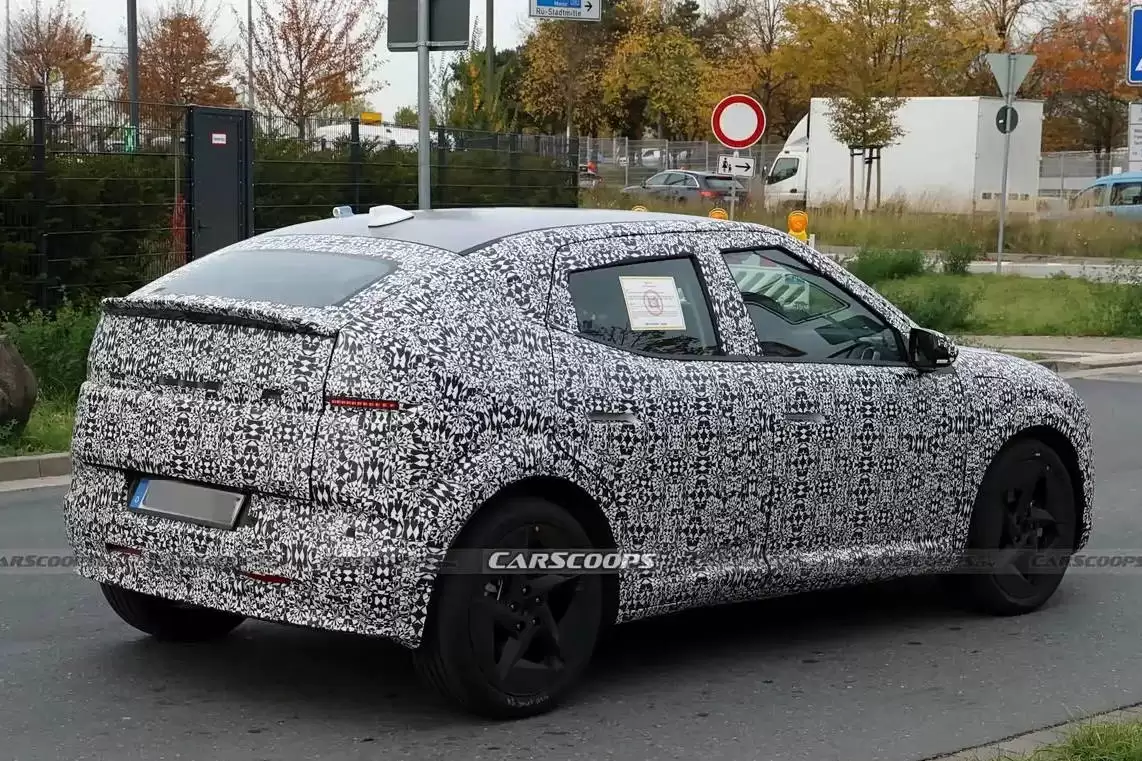 从谍照中可见,新车虽然覆盖着严密的伪装车衣,但整体轮廓已十分接近概念车的设计。车头部分采用封闭式格栅布局,上方配备两组纤细的分体式大灯,中央饰以贯穿式灯带设计。前保险杠区域虽然被遮挡,但根据设计语言推测,或将配备扁平化通风口以提升电池散热效率。