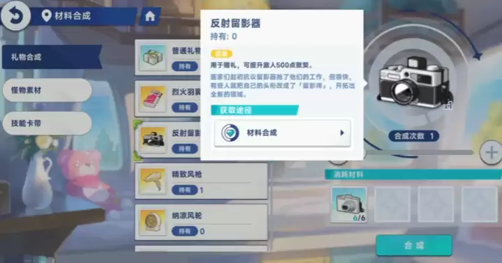 礼物品类主要按品质和角色偏好划分,不同品类在提升好感的效果和获取难度上差异显著。所有礼物都与角色设定相互呼应,品质最明显的是蓝色和金色两种。蓝色品质属于基础款,适合游戏前期资源紧张时使用,随手赠送就能提升角色的基础好感,日常任务积累的材料便可合成,前期过渡完全够用。金色品质则是高阶礼物,提升好感的效果远超蓝色品质。到了游戏中后期,想要快速提升核心角色的好感,基本都要依靠它。不过金色礼物不易获得,除了开服时系统通过邮件发放,或限时节日活动领取外,主要得依靠神器许愿蛋在材料合成界面制作,并且制作出金色礼物的概率会随着星塔闯关层数的提升而增加。