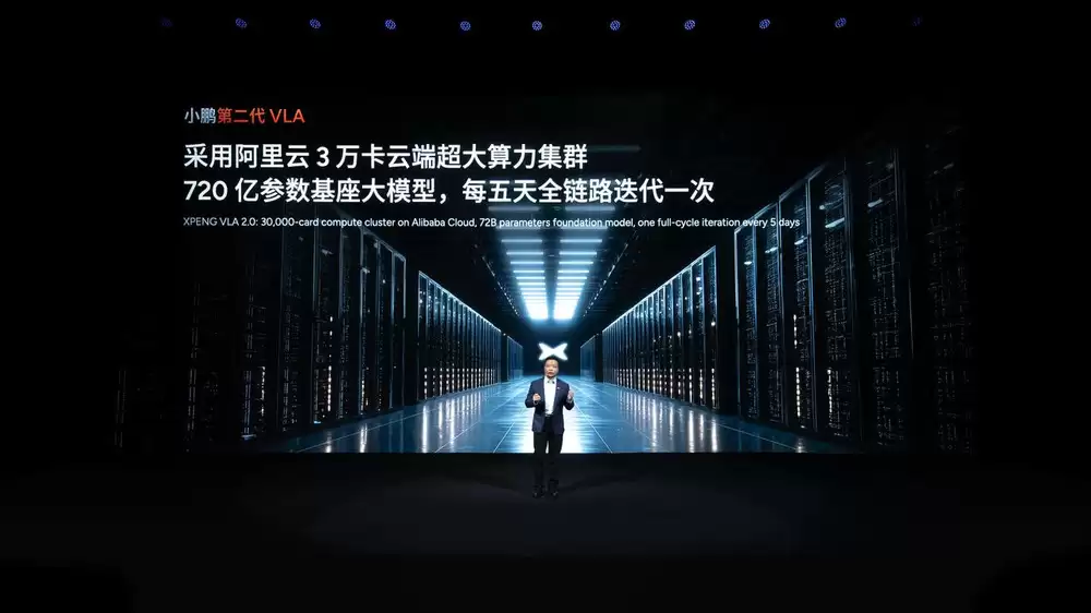 新一代小鹏VLA模型基于阿里云3万卡云端超大规模算力集群训练,采用720亿参数基座架构,每五天完成一次全链路迭代优化。根据规划,模型预计在明年将算力规模扩展至5~10万张卡。