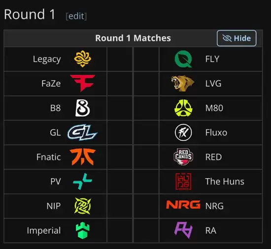 第一阶段赛事将于11月24日正式打响,网传潜在对阵情况如下。值得注意的是,Lynn Vision首战就将直面FaZe战队,而RA也将与Imperial展开正面交锋。