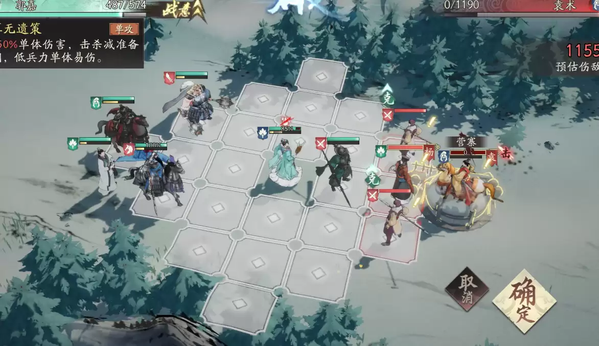 该章节的核心策略在于优先使用骑兵占领敌方高地的箭塔,随后借助己方防御优势,迅速歼灭敌方小兵。在小兵阶段,玩家需尽可能积攒战意和怒气,确保在第三回合袁术部队出现时,能率领骑兵将其引至箭塔附近。接着让所有角色释放怒气技能,发动一次彻底的清剿。