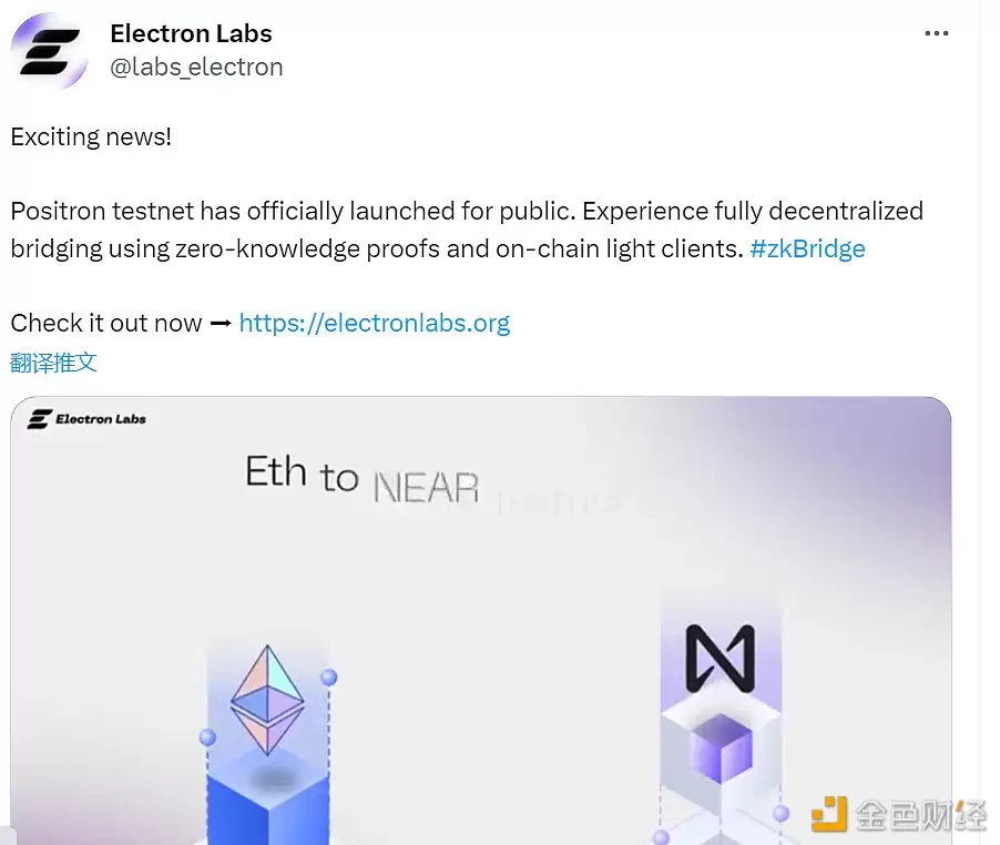 Electron Labs 此前收到了来自 NEAR 的资助,以利用 ZK 构建跨链桥。该协议使用链上轻客户端零知识来验证交易的有效性。