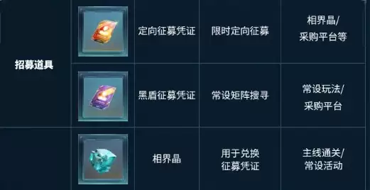 先来看看核心的招募道具。想要抽取强力角色,黑盾征募和定向招募必不可少。定向征募凭证有时间限制,主要通过采购平台兑换,遇到活动时建议多囤积。黑盾征募凭证使用频率较高,常规玩法通关后就能获取,采购平台也可兑换。积攒足够数量后,可以直接设置卡池矩阵进行抽卡,无需等待限时活动。日常活动每天都能刷新,花十分钟就能轻松完成。