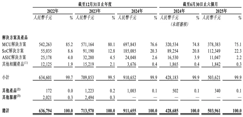 报告期内,公司收益主要来源于MCU、SoC及ASIC解决方案的提供,以及相关配套产品的销售。目前其产品已成功落地人工智能、数据中心、机器人等多个细分领域,累计服务客户超过1000家,涵盖行业头部企业、知名消费品牌及主流汽车制造商。