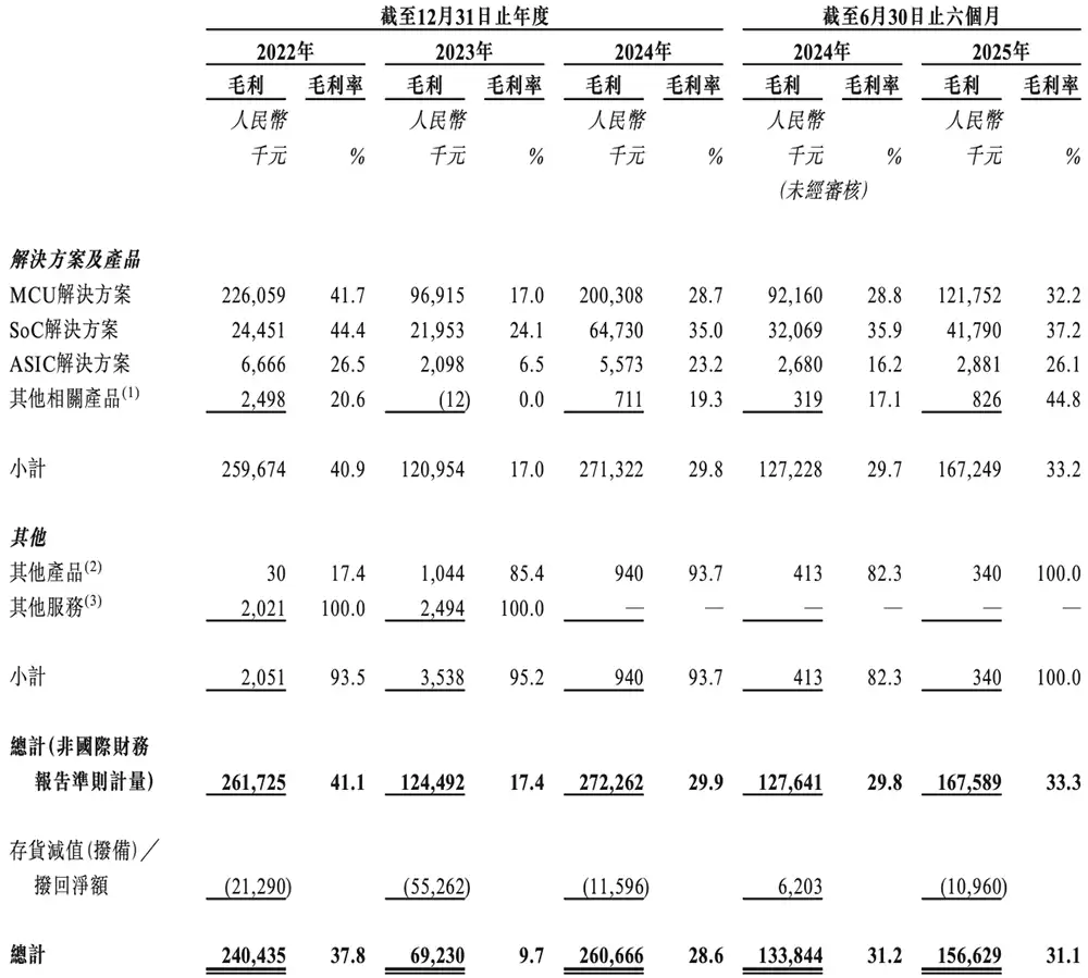 2025年上半年,公司MCU、SoC及ASIC产品销量分别为15.23亿件、0.99亿件和1.43亿件。