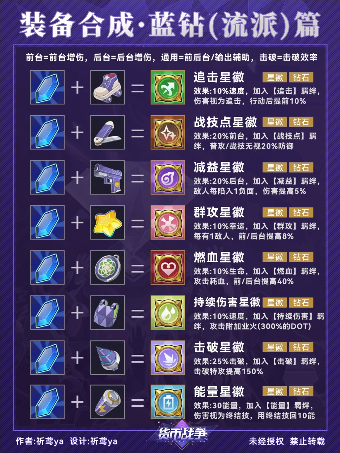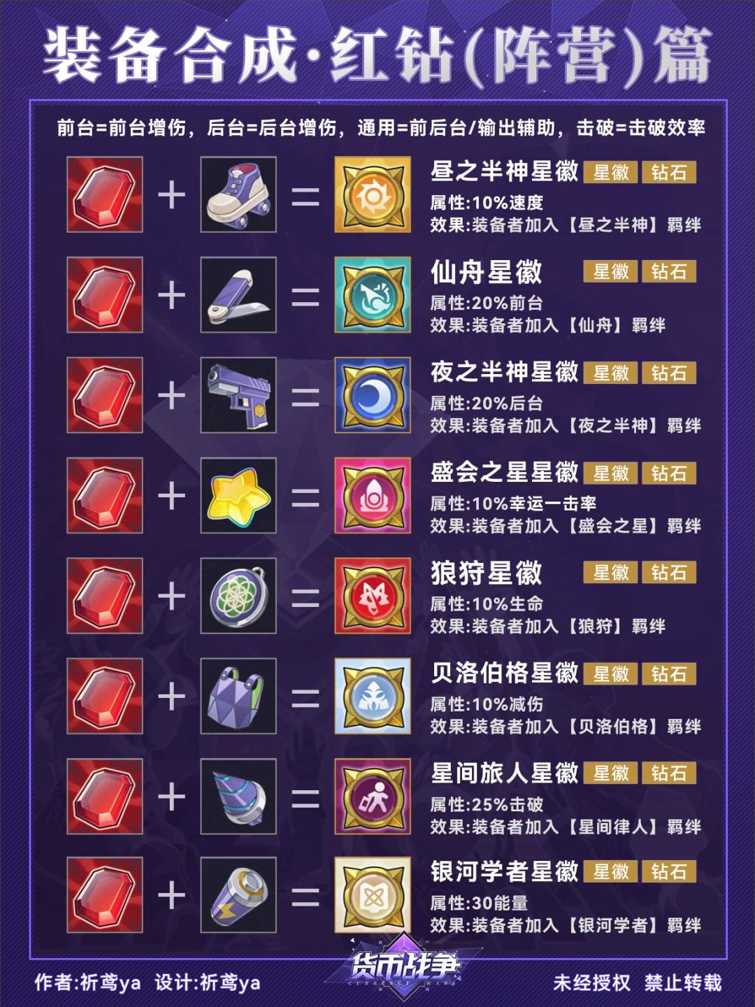 (4)最后两张是羁绊星徽的合成配方,红钻与蓝钻两两组合可以合成增加入口数量的装备