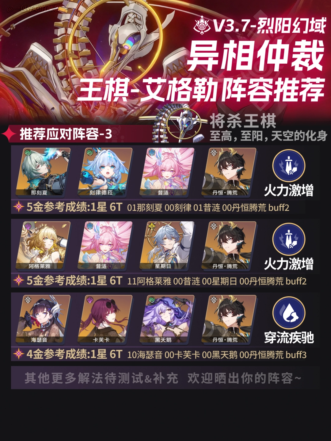 本期异相仲裁决推荐使用三骑士关卡搭配王棋艾格勒阵容