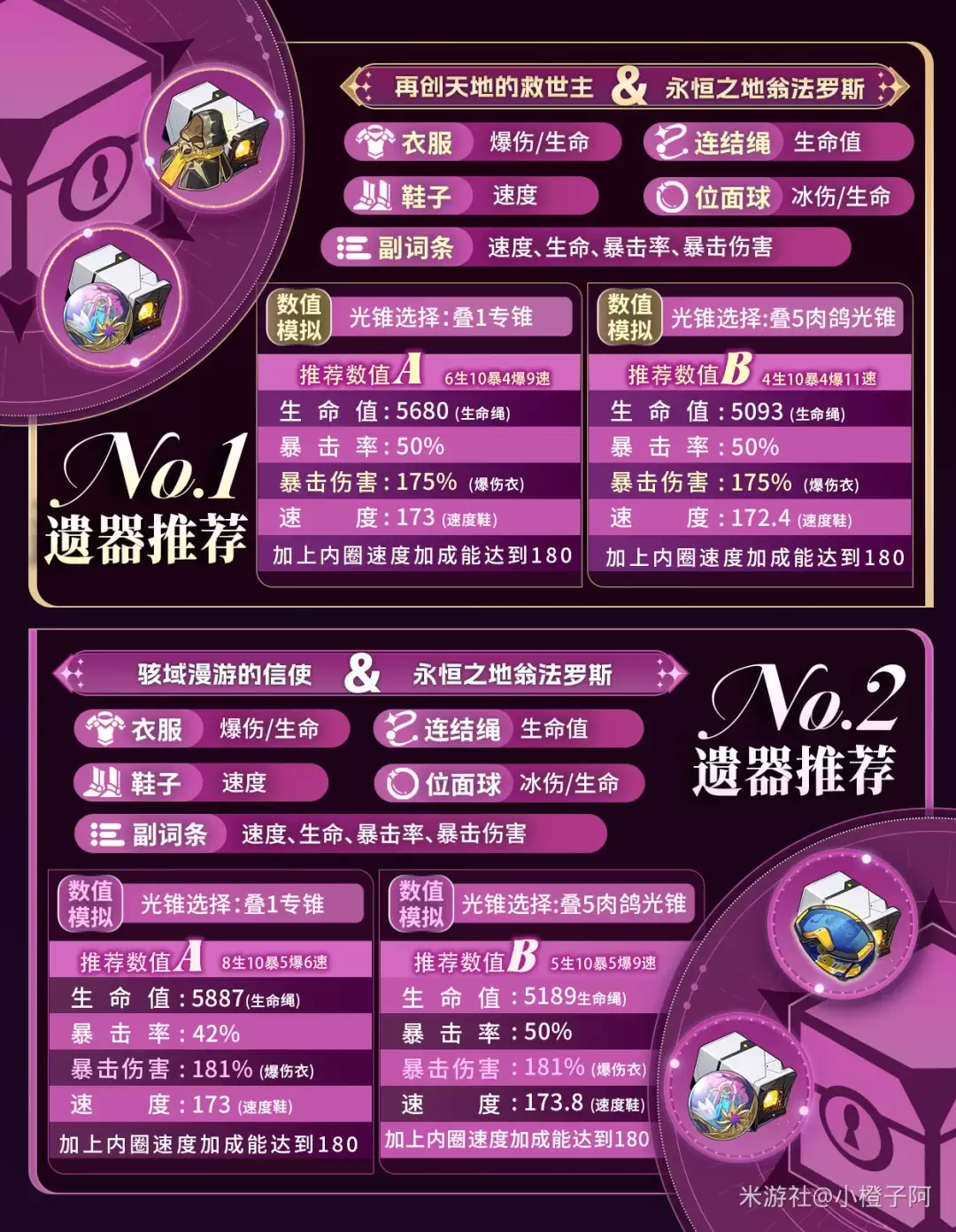②内圈遗器首推【永恒之地的翁法罗斯】,不仅提升暴击率,还能让忆灵在场时提高我方全体速度8%,既提升了全队的行动效率,也帮助自身轻松达到180+的速度阈值。