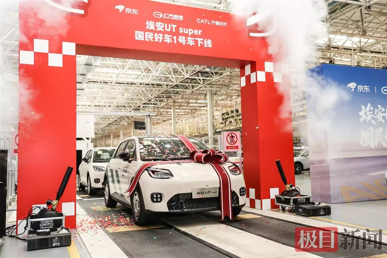 11月5日,在广汽埃安长沙“全球灯塔工厂”内,由京东、宁德时代与广汽埃安联合研发的“国民好车”埃安UT Super 1号正式下线。作为全球首款面向个人消费者的巧克力换电车型,这款车以500公里续航、99秒极速换电为核心卖点,同时支持快充与慢充双模式,为用户提供多元化的补能选择。