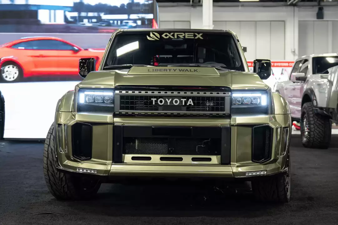 在拉斯维加斯SEMA改装展上,一辆经过Liberty Walk深度改装的丰田兰德酷路泽250系列(部分市场称普拉多)成为全场焦点。这款以Alpharex品牌名义展出的作品,凭借夸张的宽体套件和运动化设计,展现出足以与梅赛德斯-AMG G63正面抗衡的视觉冲击力。
