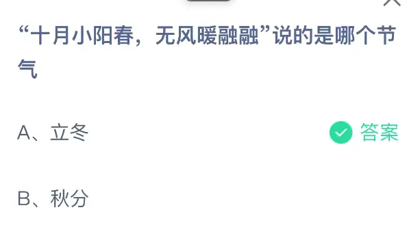 2025年11月7日支付宝蚂蚁庄园答案:小阳春指哪个节气? 2025年