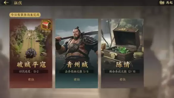 在《三国群英传:策定九州》里,破贼平穰是一个非常实用的日常资源副本,无论你是刚入坑急需攒资源的新手,还是后期想快速养成的老玩家,都能从这里获得不少实用奖励。这个副本位于主界面的征伐功能中,解锁门槛不高,刚玩没多久就能进去挑战。它拥有独立的战斗场景,与大地图上的攻城、剿匪互不影响,即便大地图上的武将在忙着干活,也不妨碍你在副本里调兵遣将。