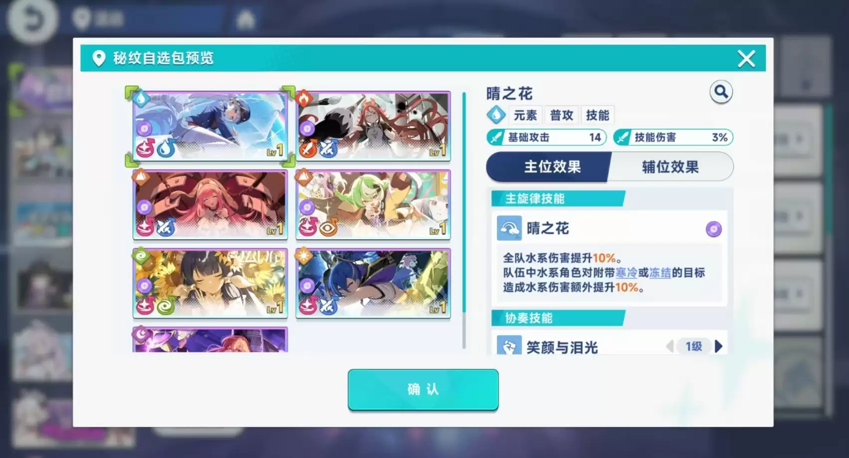 开启礼包后,我们首先可以预览每张秘纹的详细效果,仔细查看它们的封面绘图表、主位效果和辅位效果。在秘纹选择界面中,选定任意一张秘纹后,还能通过元素标签了解该秘纹各技能的效果特性。比如元素标签代表着该秘纹在元素伤害加成方面的专精方向,这些信息都能帮助我们准确判断秘纹的定位。