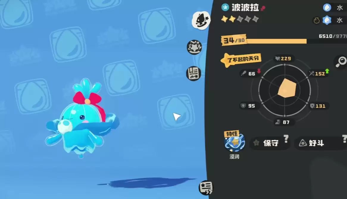 水蓝蓝是玩家在游戏初期就能获得的伙伴,其核心技能“水之波纹”具备群体减速效果,同时附带的“治疗水滴”还能持续恢复生命值,在前期作战中既能维持队伍续航,又能带来一定的输出贡献。