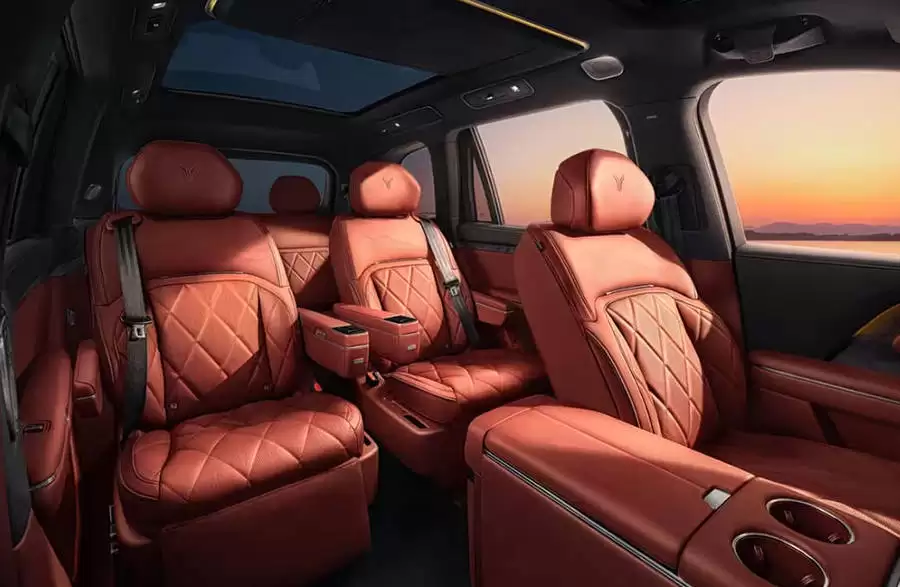 岚图泰山在外观设计上同样别具匠心,车身侧面采用双色设计,搭配半隐藏式车门把手和独特的饼圈轮毂,营造出强烈的视觉精致感与豪华气息。车尾部分,贯穿式尾灯组与岚图品牌英文标识巧妙融合,配合车顶扰流板和倒梯形牌照区域,层次感十足。车身尺寸方面,新车长宽高分别为5230/2025/1817mm,轴距达到3120mm,为乘客提供了宽敞舒适的乘坐空间。