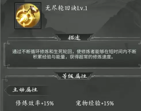 心法:某些心法书具有提升修炼效率的效果,例如“无尽轮回诀”