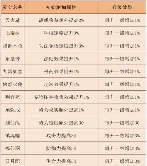 灵宝:部分灵宝激活与升级也能带来修炼效果加成