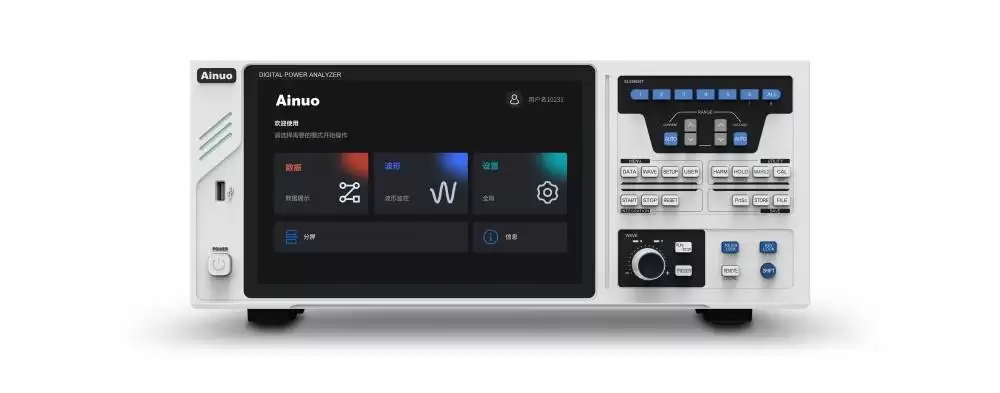 针对这些行业痛点,艾诺仪器凭借三十余年的技术沉淀,推出了高精度多通道功率分析仪ANPA4000系列。该设备以宽频带高精度测量为核心优势,采样率高达2MS/s,支持1MHz测量带宽,配合新型运算放大电路,基本精度达到0.03%*读数+0.05%*量程,波形绘制采用Peak_Peak技术,可精准还原电机复杂信号特征。其多信号同步测量功能通过独立相位偏移补偿技术,有效消除了互传感器导致的固有相位偏差,确保功率因数计算的准确性。