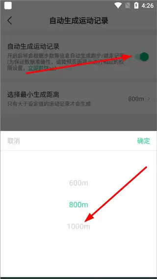 2. 进入设置界面后,你会看到“自动生成运动记录”功能选项;