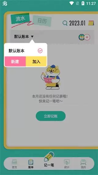 2、点击界面上的"默认账本"选项,在弹出的菜单中选择"加入"。