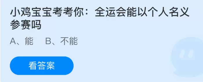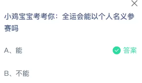 1、小鸡宝宝考考你:全运会能以个人名义参赛吗