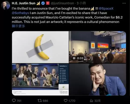 孙宇晨豪掷620万美元购入“胶带香蕉”:艺术还是炒作?