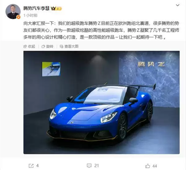 腾势汽车总经理李慧近日公开透露,该品牌旗下全新超级跑车腾势Z正在德国纽北赛道进行严苛测试。这款融合了比亚迪技术突破的旗舰车型自曝光以来就备受行业关注,其量产版设计细节首次通过最新渠道对外披露。