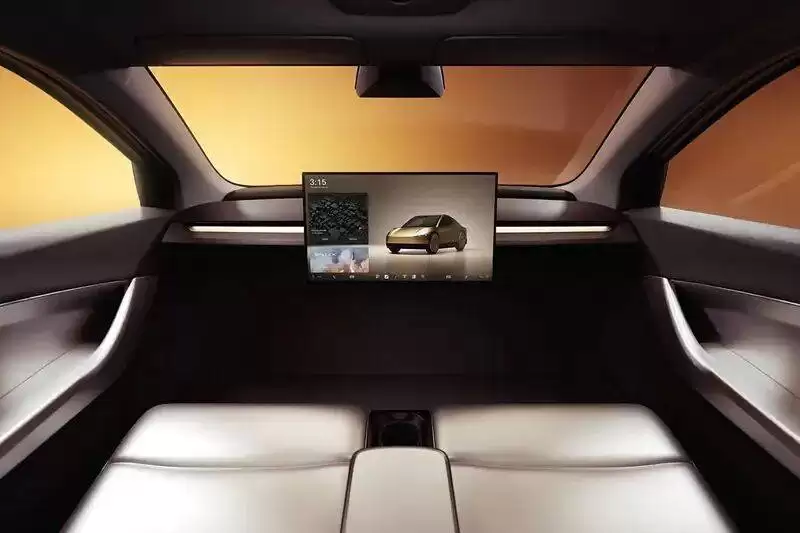 内饰布局完全颠覆传统驾驶舱概念。马斯克确认,该车型将取消方向盘、加速踏板及制动踏板,全面依赖特斯拉全自动驾驶系统(FSD)。车内采用一体化座椅设计,靠背与坐垫形成分段式结构,中央配备可折叠扶手及悬浮式中控屏幕。空间设计强调多功能性,后排座椅支持折叠以扩展储物空间。