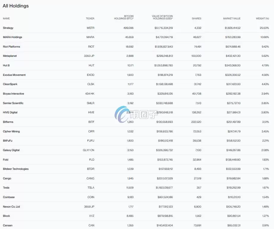 符合这些条件的公司,会根据它们持有的比特币价值来分配权重,但为了避免过度集中,单个公司的权重上限是25%。