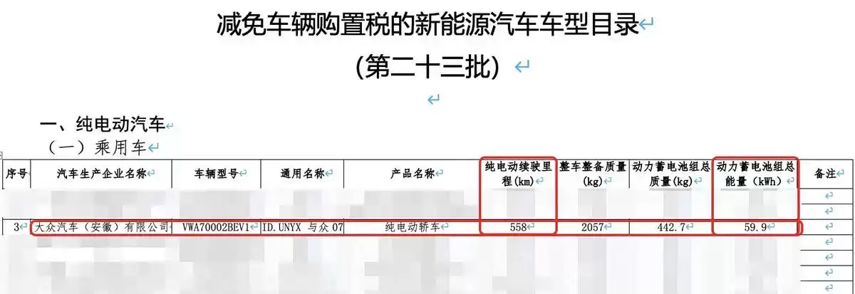 根据工信部最新发布的《第二十三批减免车辆购置税的新能源汽车车型目录》,大众安徽旗下全新车型ID.7的续航参数正式揭晓。这款基于全新电子电气架构打造的新能源SUV,将搭载59.9kWh容量电池组,CLTC工况下续航里程达558公里。