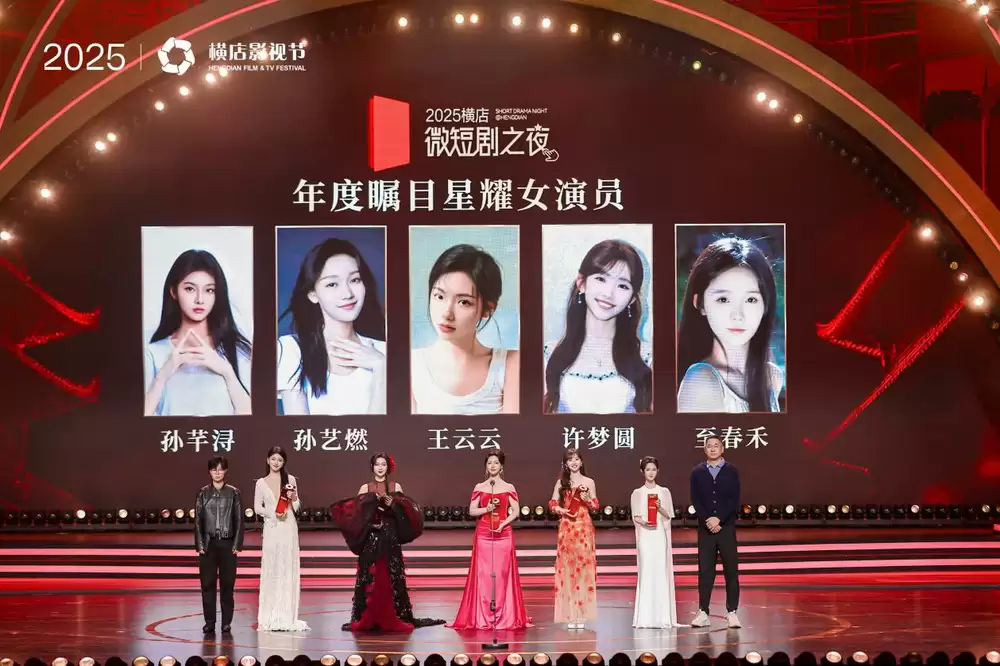 在“2025横店微短剧之夜”活动上,粒粒橙传媒娱乐营销中心负责人杨菲为“年度瞩目星耀女演员”孙千、孙艺燃、王云云、许梦圆、至春禾颁奖。未来,粒粒橙传媒将继续助力该计划,为青年演员提供更多展示和合作机会。