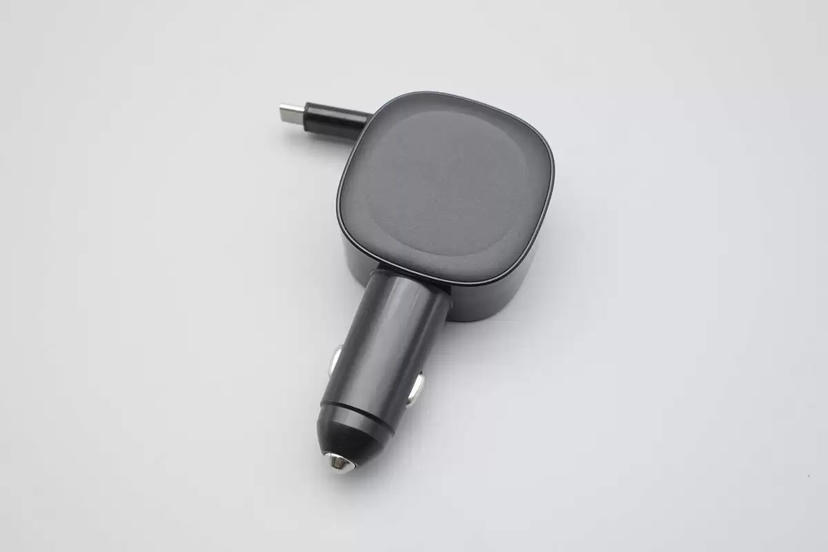 在结构设计上,D60ACC采用“方中带圆”的一体化造型,机身尺寸为99.64mm×51.3mm×28.95mm,重量仅73.3克。深灰色上盖搭配高光腰线设计,而插头端偏向布局的重心设计则有效防止车辆行驶中的松动。点烟器插头采用金属半球形弹簧顶针结构,配合镀层负极弹片与锥形导角,既确保12V/24V车载座中的低接触电阻,又兼顾插拔顺滑度与耐磨性。机身侧面配置的1A1C接口旁设有专用线槽,USB-C端子采用升级TPE高强度线材,72厘米线长配合自动回卷设计,既避免缠绕又保持使用整洁。