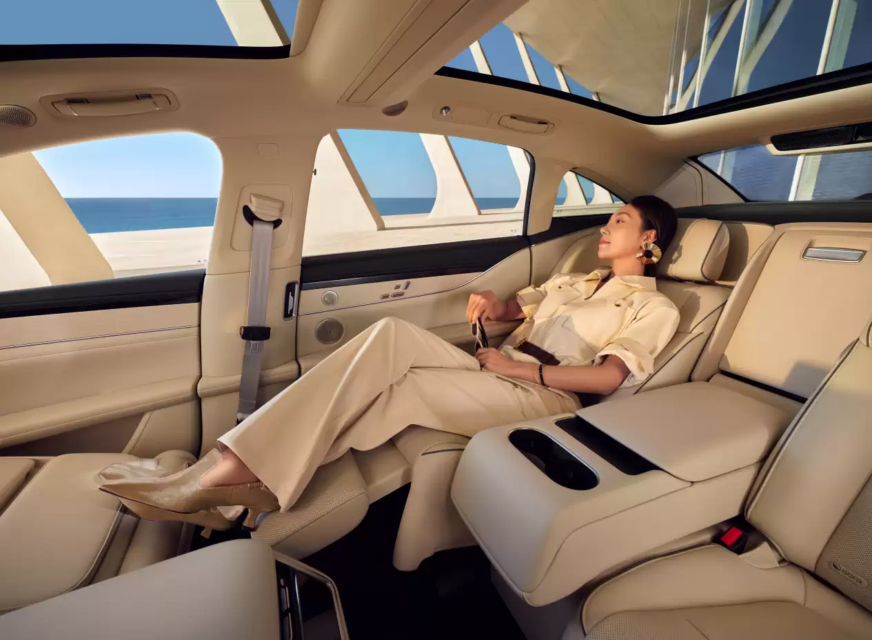 座舱选材方面,新车采用触感细腻的Nappa真皮包覆座椅,质感柔软舒适;进口实木饰板纹理自然独特;麂皮车顶的运用则进一步提升了整个内饰的奢华氛围。舒适性配置上,1962mm的奢阔空间配合标配的通风、加热与按摩功能,让每位乘客都能尽享尊贵体验。同时更提供副驾、后排零重力套装的双重选择,不仅可以完全躺平,其贴合度、按摩功能的细腻程度,丝毫不逊色于百万级豪车;华为卓越音响系统由25个扬声单元精心调校,带来“殿堂级歌剧院体验”;支持-6℃至50℃温控的压缩机车载冷暖箱,更是随时解锁冷饮热饮的贴心配置。此外,新车在“百万级静谧性”上也实现了显著突破:全车配备9块双层夹胶隔音玻璃、全域静音设计,配合主动降噪技术,让车内噪音控制表现优于同级车型,这种越级表现使新款享界S9在30万级市场中形成了独特的“豪华壁垒”。