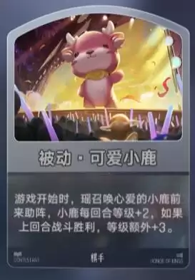 最后要介绍的是许多女性玩家特别喜爱的棋手——瑶妹。她的被动技能“可爱小鹿”在游戏开始时,能召唤出自己喜欢的小鹿到前方助战。每经过一个回合,小鹿的等级就会提升2级;如果上一回合战斗获胜,小鹿的等级还会额外增加3级。瑶妹的秘技“超绝可爱小鹿”每过三个回合就能获得一张秘技牌“神奇小鹿”,效果是强化小鹿并提升其等级或特性。她的专属天赋“巨型玩偶”释放后,能使小鹿的等级提升30%,同时为小鹿提供一层护盾保护。